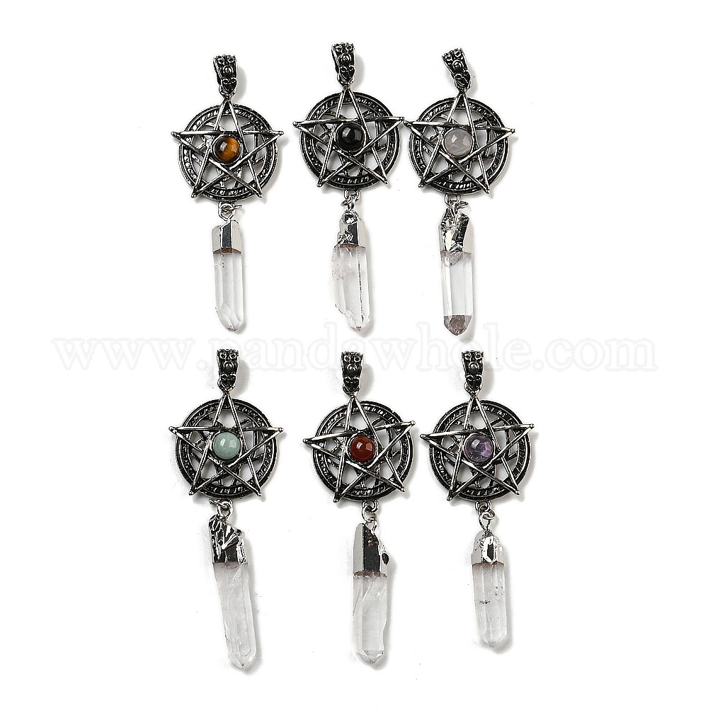 Большие подвески из натуральных драгоценных камней и кристаллов кварца-призмы, антикварные серебряные тона стойки с покрытием из сплава, подвески со звездами, без свинца и без кадмия