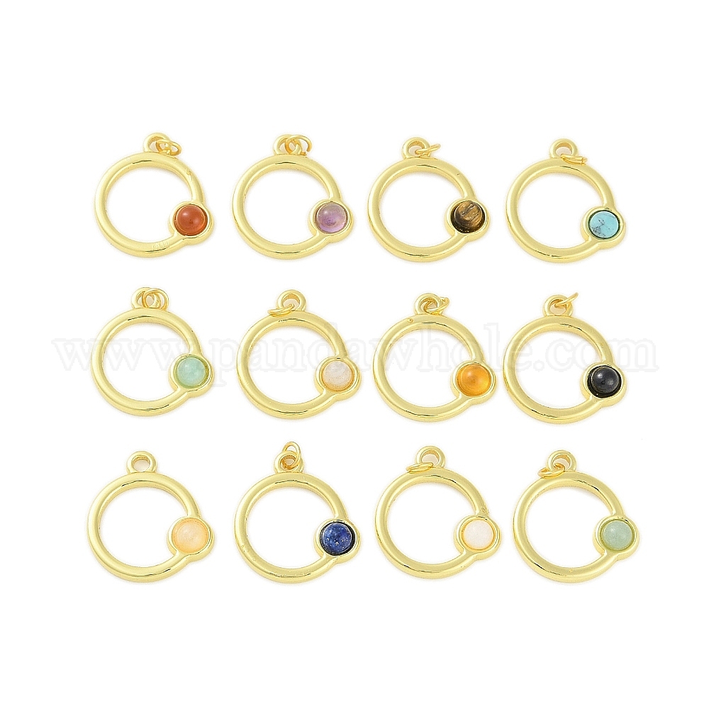 Cmешанные подвески драгоценных камней, 304 подвески-кольца из нержавеющей стали с перемычками, реальный 18 k позолоченный