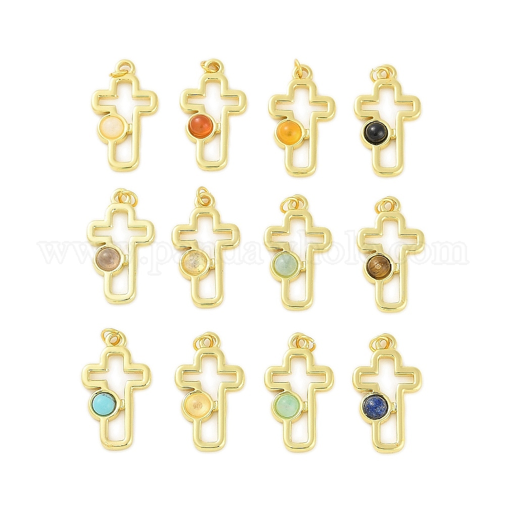 Cmешанные подвески драгоценных камней, 304 крестики из нержавеющей стали с перемычками, реальный 18 k позолоченный