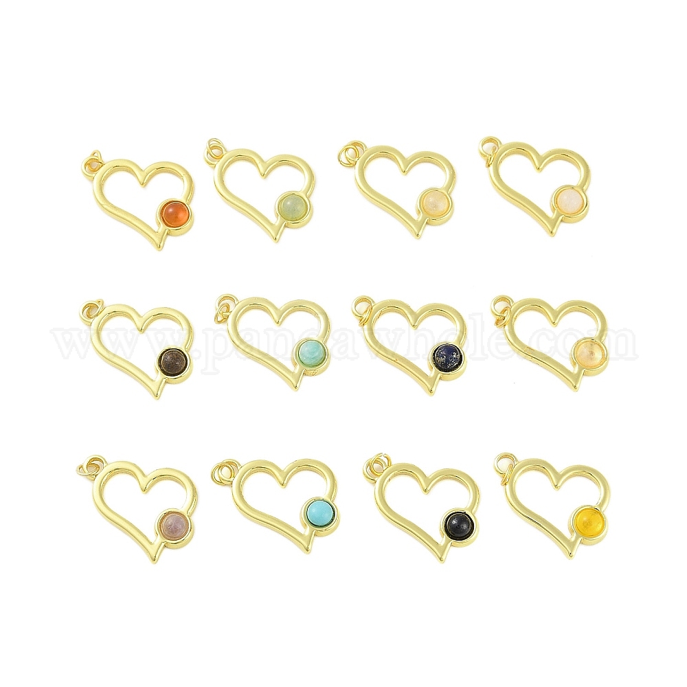 Cmешанные подвески драгоценных камней, 304 подвески-сердечки из нержавеющей стали с кольцами-прыгунами, реальный 18 k позолоченный