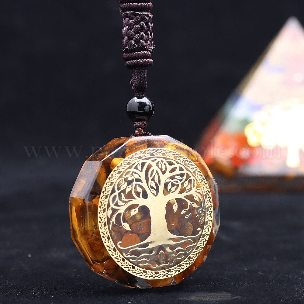 • Тигровый глаз Подвески из натурального тигрового глаза из смолы, плоско-круглые, 36x11 мм