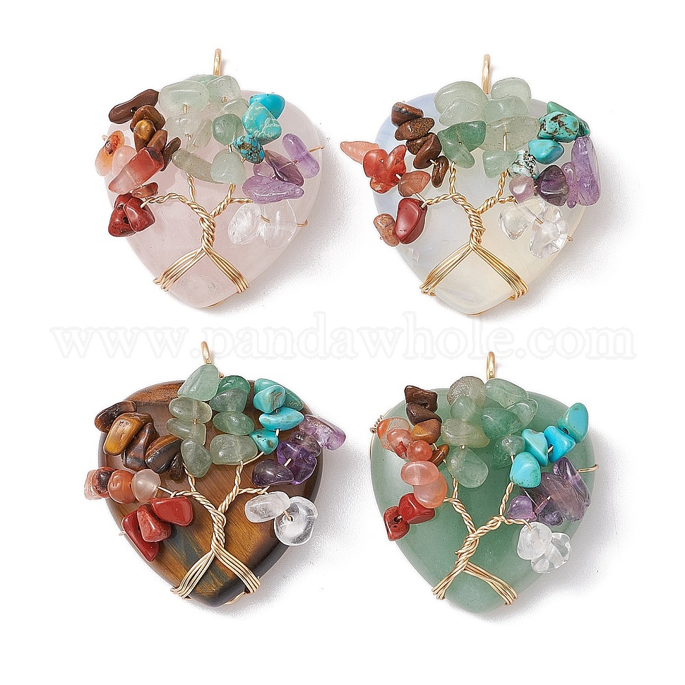 Подвески в форме сердца из медной проволоки с драгоценными камнями, чакра драгоценные камни чип дерево жизни амулеты, золотые