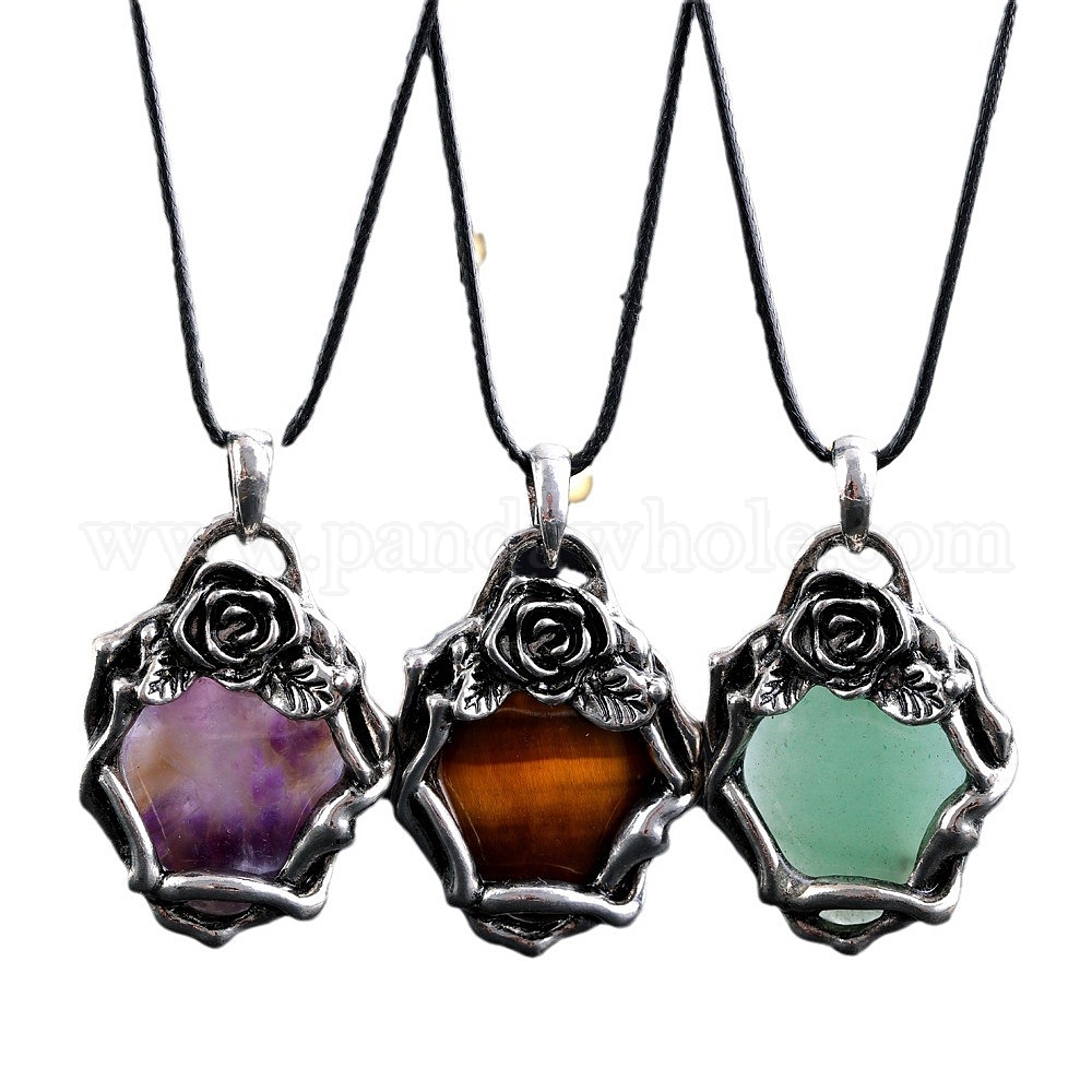 Природных драгоценных камней подвески, роза цветок матал драгоценные камни шармы, античное серебро