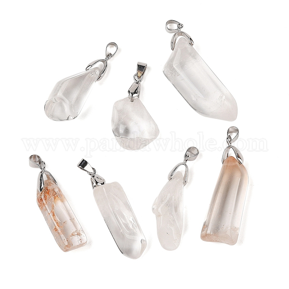 Природного кварца хрустальных подвесок, подвески из горного хрусталя с платиновым покрытием, застежки-кнопки из латуни