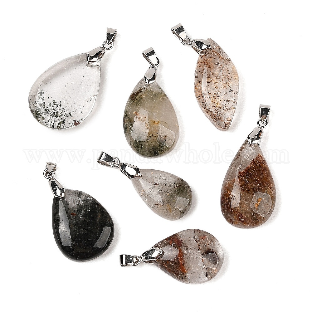 Подвески из натурального лодолитового кварца, с латунными кнопками платинового цвета на поручителях, разнообразные