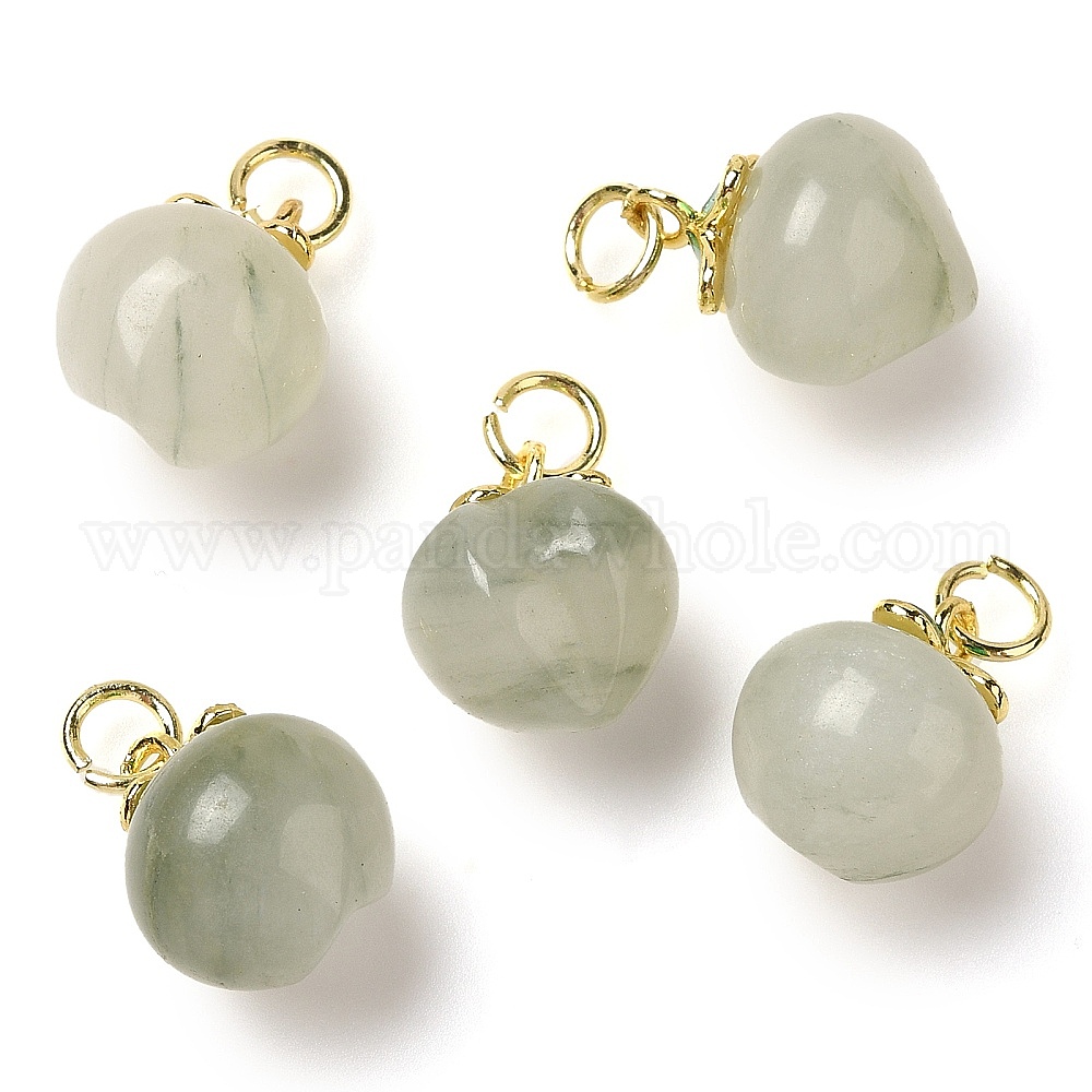 Подвески из натурального нефрита с фруктами, подвески персикового цвета с металлическим эмалевым листом, золотые