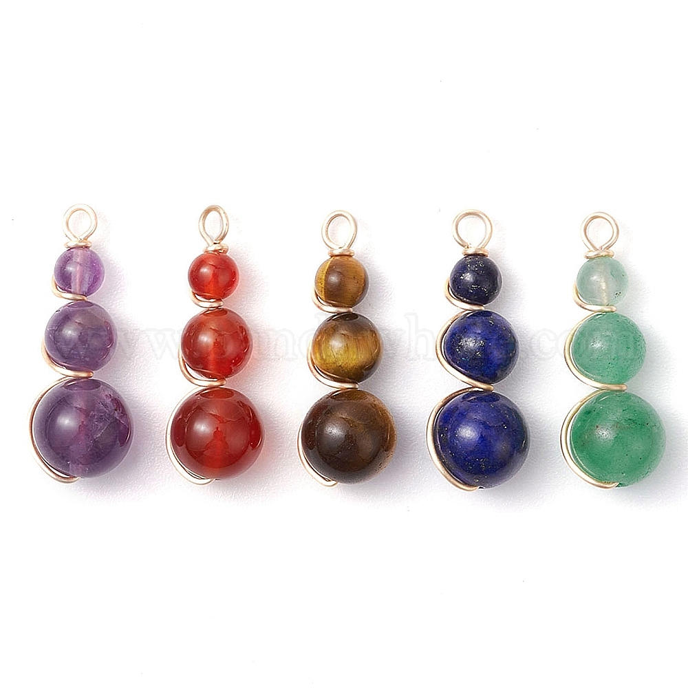 5 шт. 5 стили подвески из натурального зеленого авантюрина, тигрового глаза, лазурита, сердолика и аметиста, обмотанные медной проволокой, круглые подвески из бисера, золотой свет, смешанные окрашенные и неокрашенные