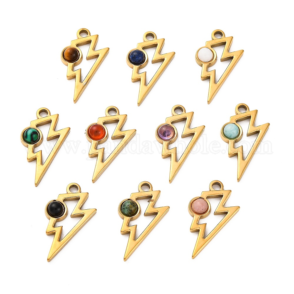 Природные каменные смешанные подвески, ионное покрытие (ip) 304 подвески-молнии из нержавеющей стали, реальный 18 k позолоченный, смешанные окрашенные и неокрашенные