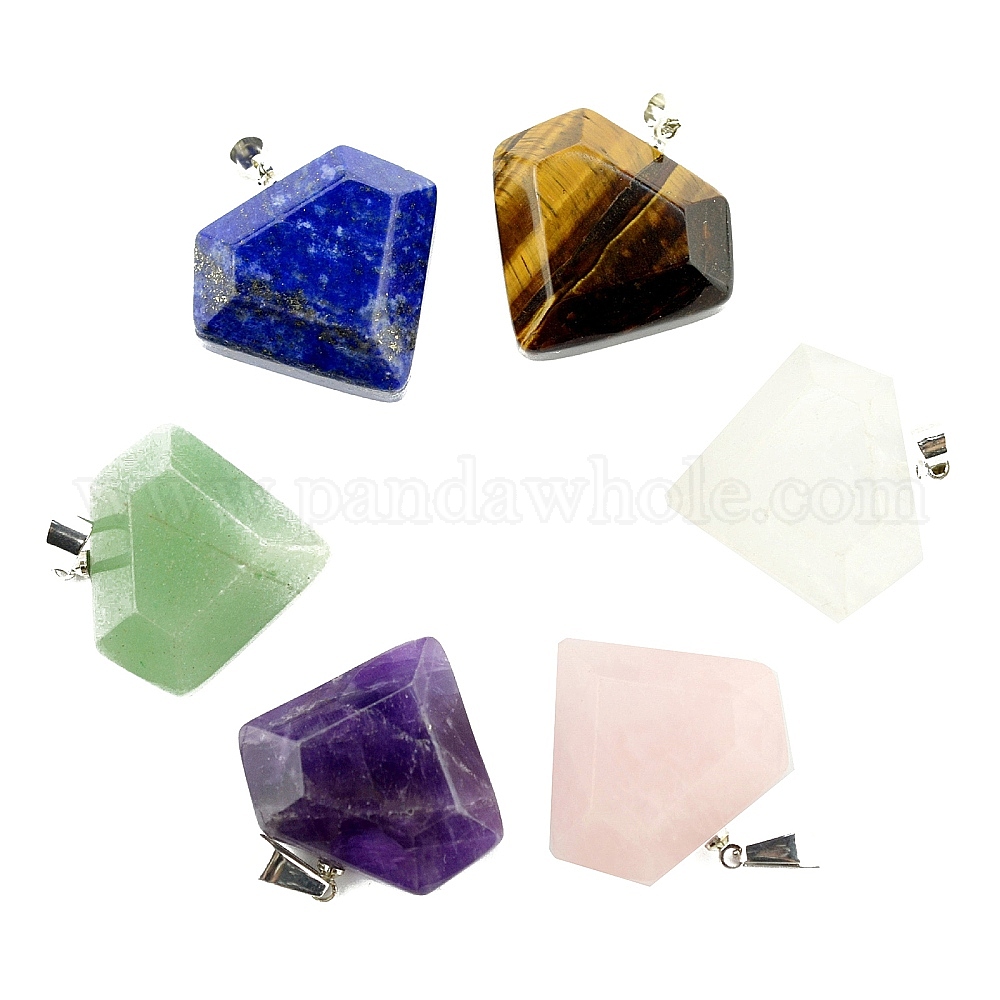 Ограненные подвески из натуральных драгоценных камней, подвески с бриллиантами и металлическими застежками-кнопками платинового оттенка