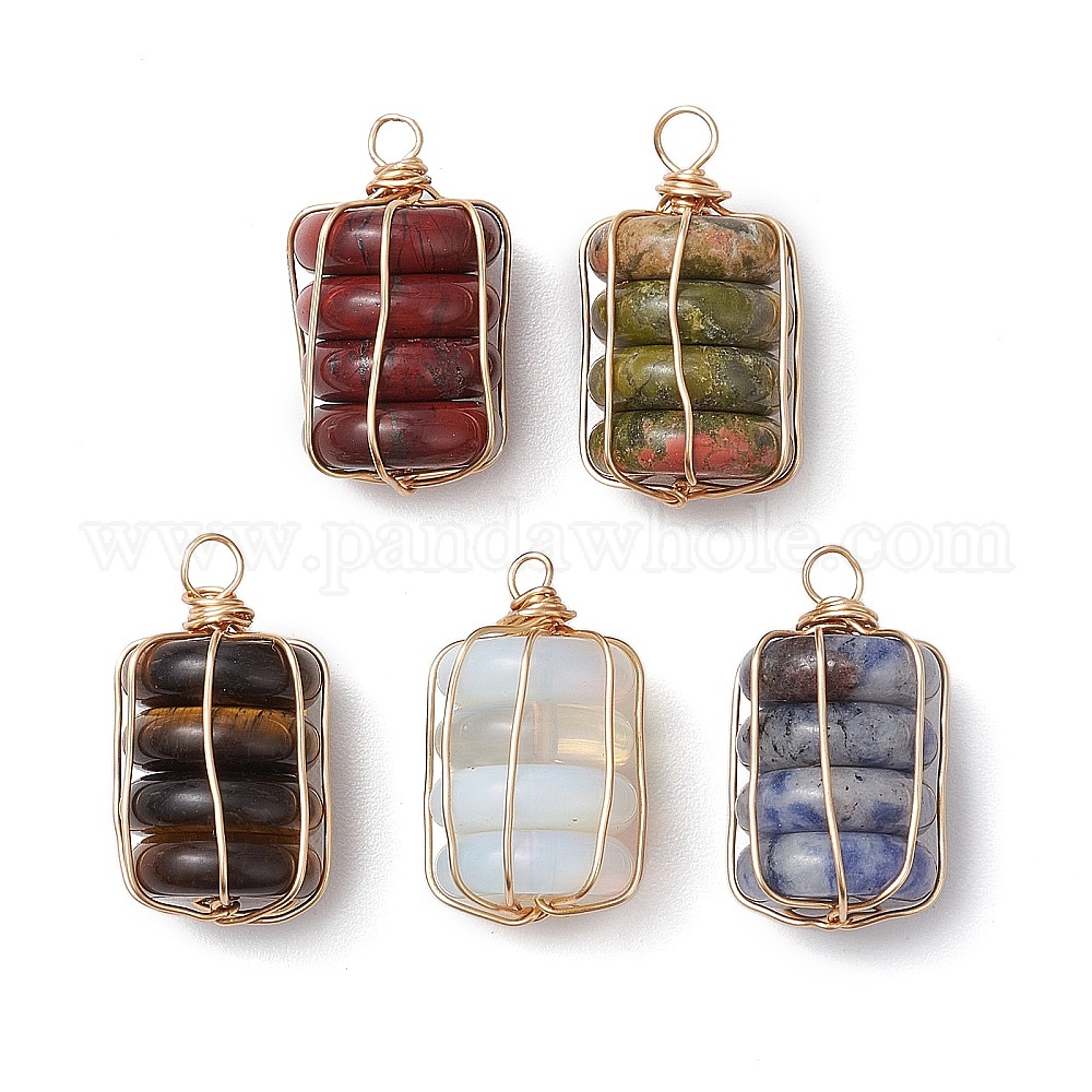Подвесные колонны из натуральной радужной красной яшмы/натурального тигрового глаза/натурального унакита/натуральной голубой пятнистой яшмы/опалита, обмотанные медной проволокой, реальный 18 k позолоченный