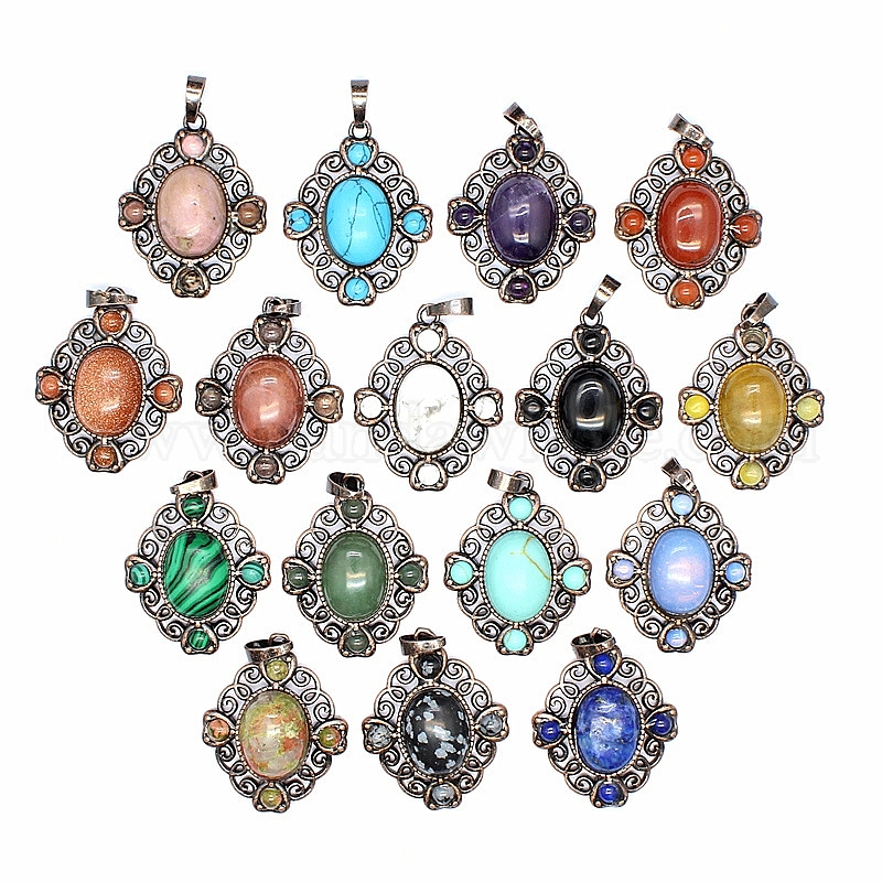 Ретро полые подвески из натуральных и синтетических драгоценных камней, подвески в виде цветка-ромба, с красной медной металлической фурнитурой