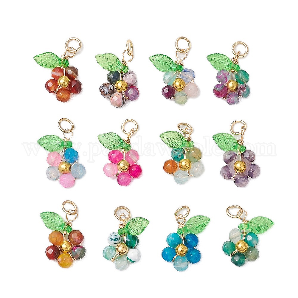 12шт. 12 цвета окрашенные граненые круглые подвески из натурального агата, цветочные подвески с акриловыми листьями, золотые