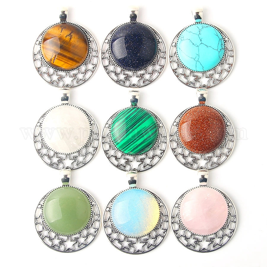 Драгоценный камень подвески, плоский круг с луной и звездой