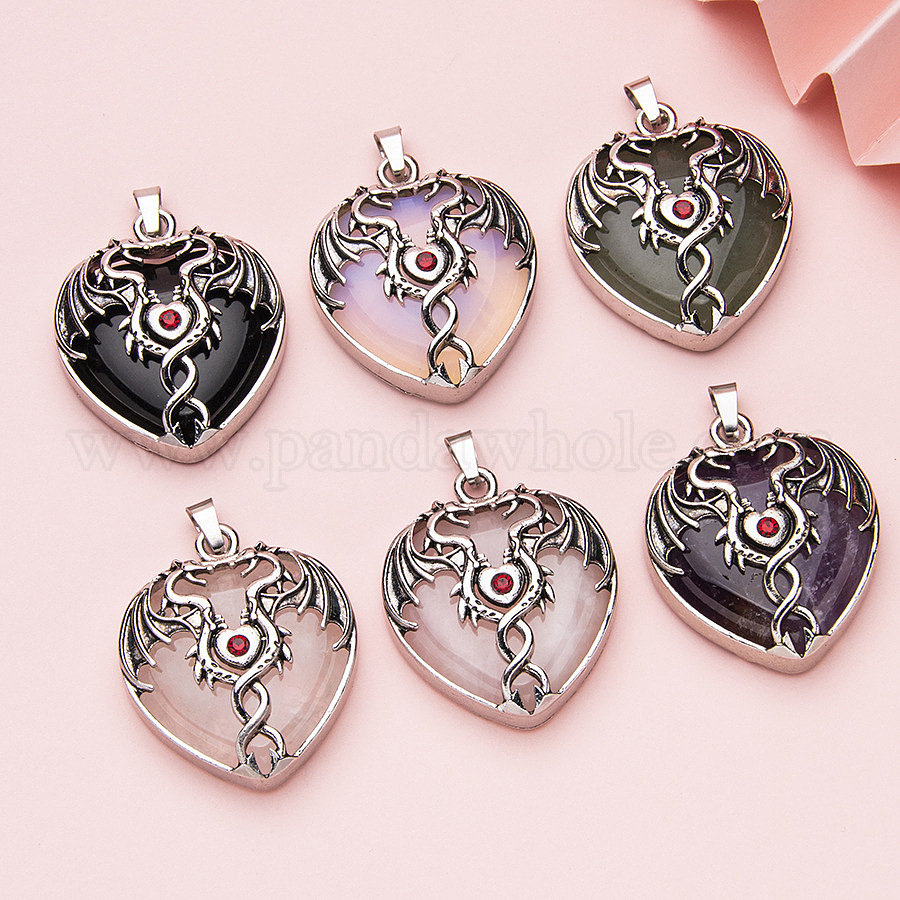 Природных драгоценных камней подвески, с фурнитурой из цинкового сплава, сердце с драконом