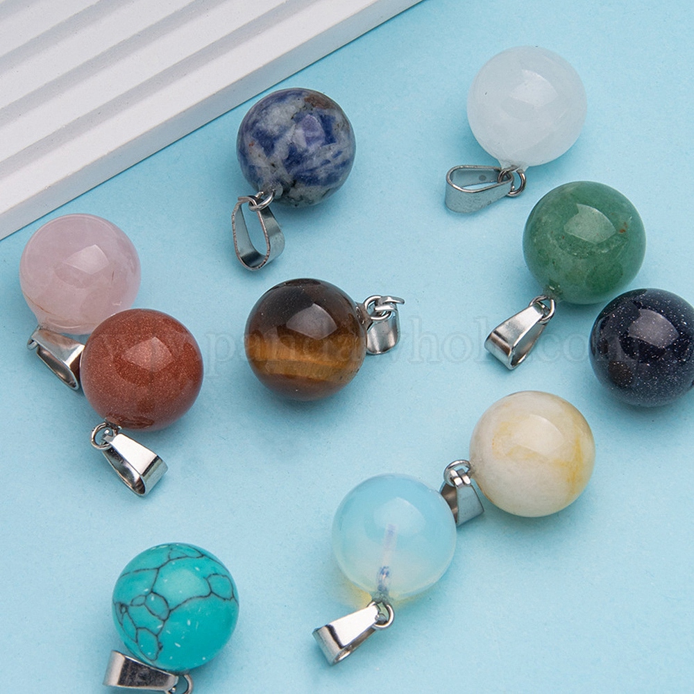 • Синий Драгоценный Камень Синтетические подвески из синего голдстоуна, круглые, 13~14 мм