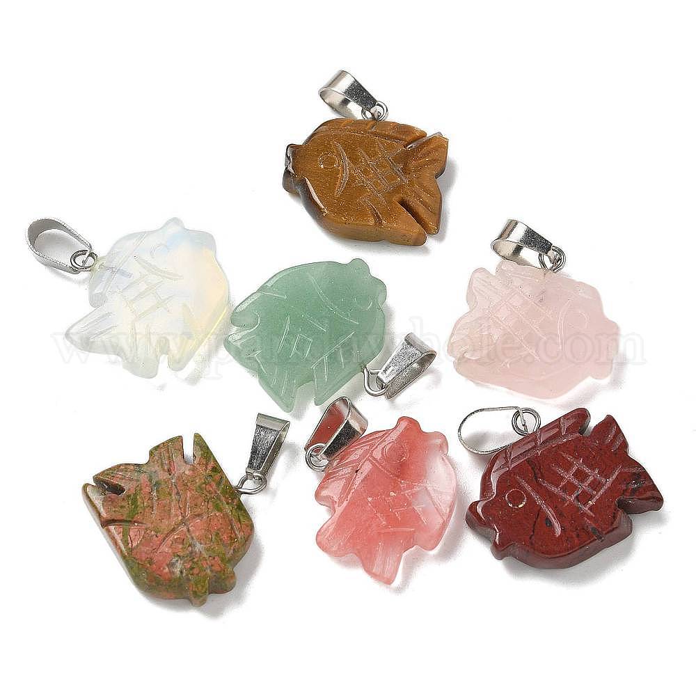 • Смешанные камни Природные и синтетические смешанные подвески драгоценных камней, с 201 вывод из нержавеющей стали, рыба, 19x20x5.5 мм, отверстие : 4x7 мм