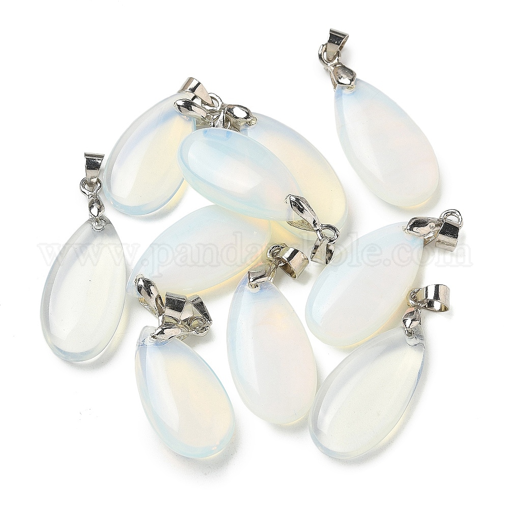 Opalite подвески, подвески-слезинки с застежками-кнопками из латуни платинового оттенка