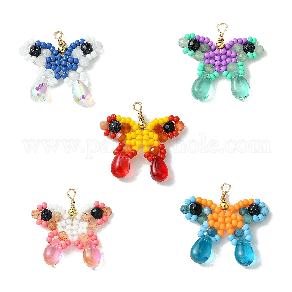Подвески-бабочки из бисера, граненые круглые подвески из натурального драгоценного камня, синтетического синего золота и стеклянных бусин, золотые