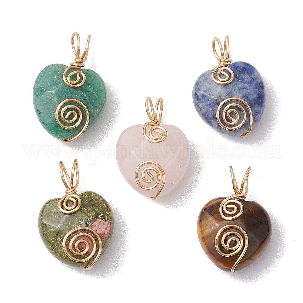 Драгоценный камень подвески, с медной проволокой, граненое сердце