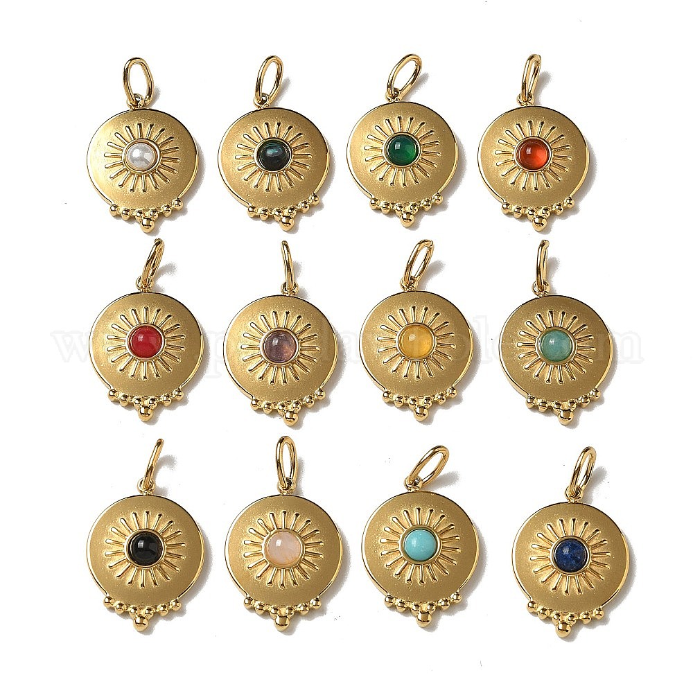 Ионное покрытие (ip) 304 нержавеющая сталь с подвесками из натуральных и синтетических драгоценных камней, реальный 14 k позолоченный, смешанные окрашенные и неокрашенные, плоский круглый шарм