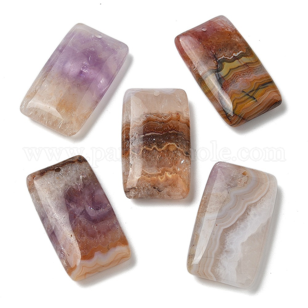 Подвески из натурального аметиста и кружевного агата, прямоугольник амулеты