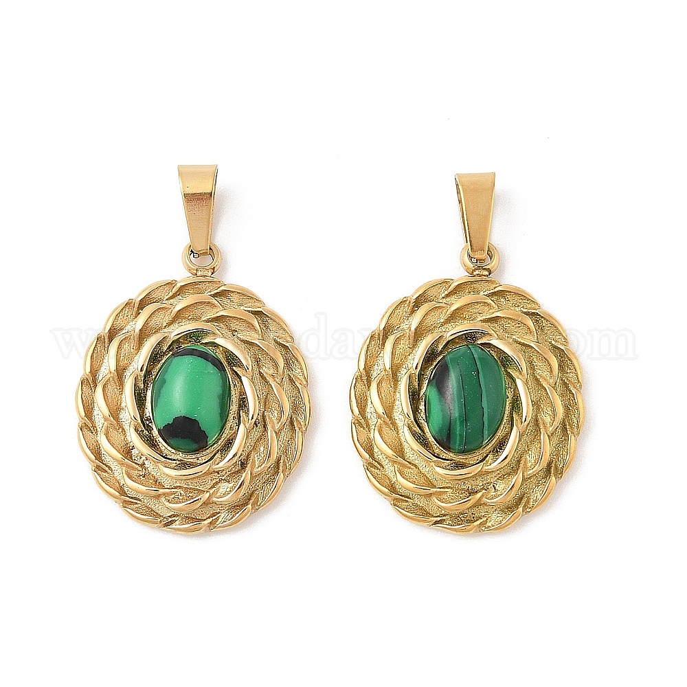 304 подвески из нержавеющей стали, овальные подвески из синтетического малахита, ионное покрытие (ip)