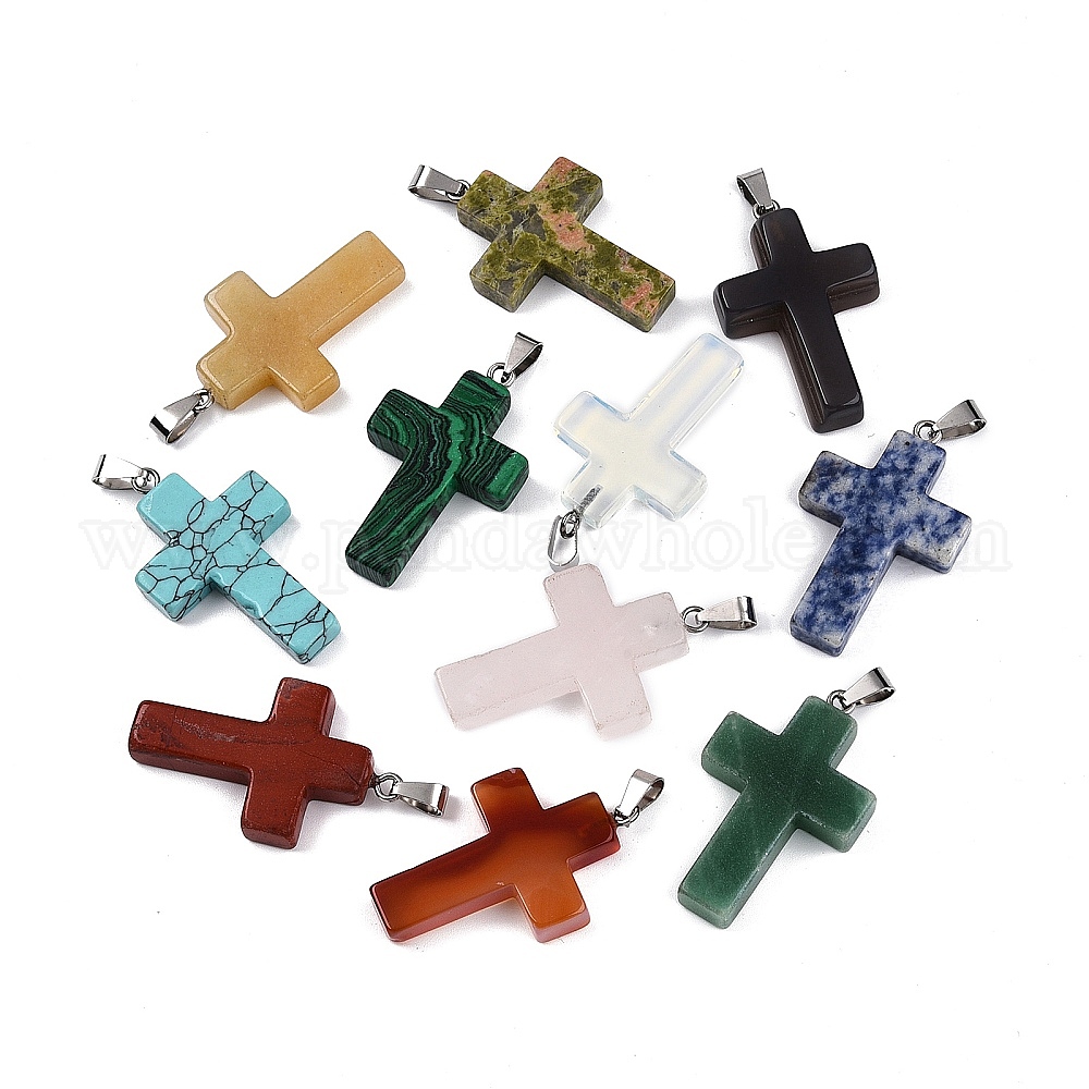 Смешанные подвески камень, крест прелести, смешанные окрашенные и неокрашенные, с 201 защелкой из нержавеющей стали на поручнях, цвет нержавеющей стали (02ZEQK)