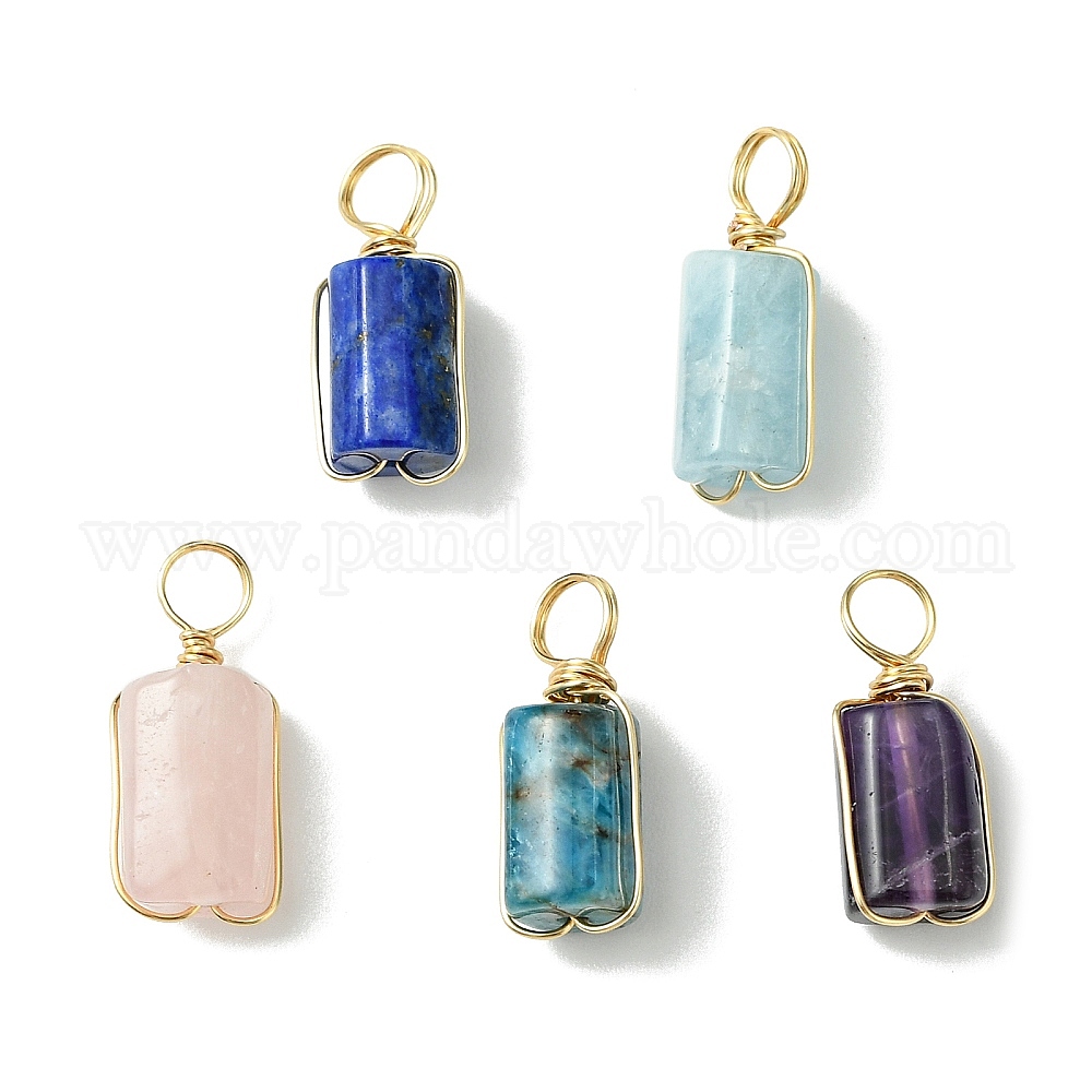 5 подвески из натуральных смешанных драгоценных камней, cloumn, с медной проволокой
