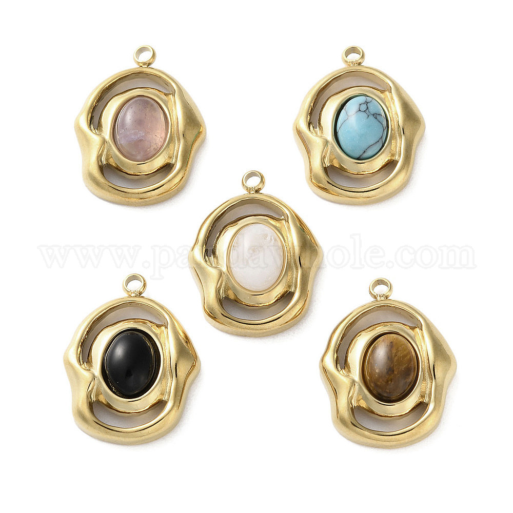 Драгоценный камень подвески, овальные амулеты, с 304 установками из нержавеющей стали, реальный 18 k позолоченный