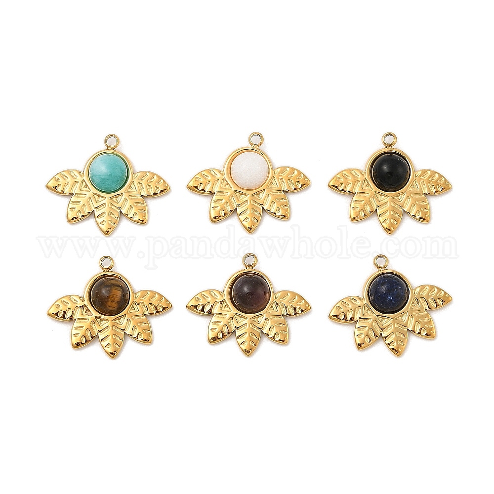 Природных драгоценных камней подвески, с 304 фурнитурой из нержавеющей стали, ионное покрытие (ip), лист прелести