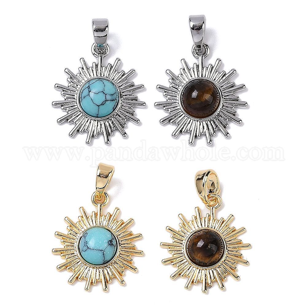 • Синтетическая Бирюза Синтетические бирюзовые подвески, латунные солнечные подвески, реальный 18 k позолоченный, 17x15x4 мм, отверстие : 4x2 мм