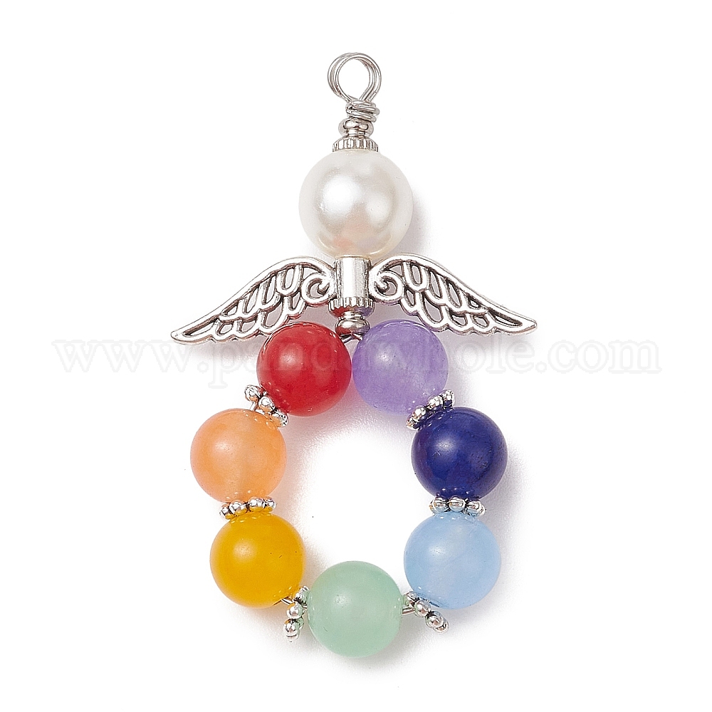 Большие подвески из малайзийского нефрита чакра, окрашенного натуральным красителем, подвески-ангелы с акриловыми бусинами-имитаторами и крыльями из сплава, античное серебро