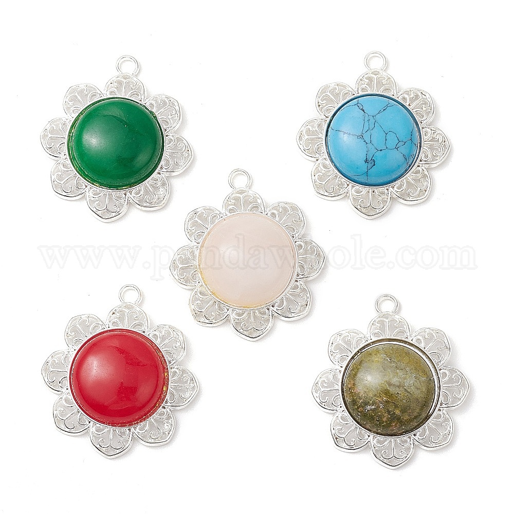Природные каменные смешанные подвески, цветка сплава прелести, серебряный цвет гальваническим, смешанные окрашенные и неокрашенные