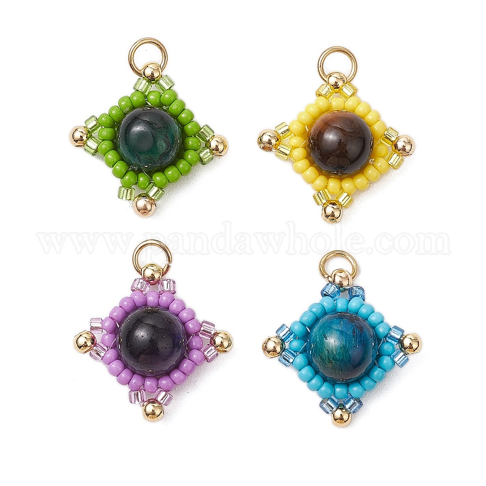 Подвески в виде звезд из натурального тигрового глаза (окрашенного и нагретого) и стеклянных бусин ручной работы, с целью перехода в кольце, золотые