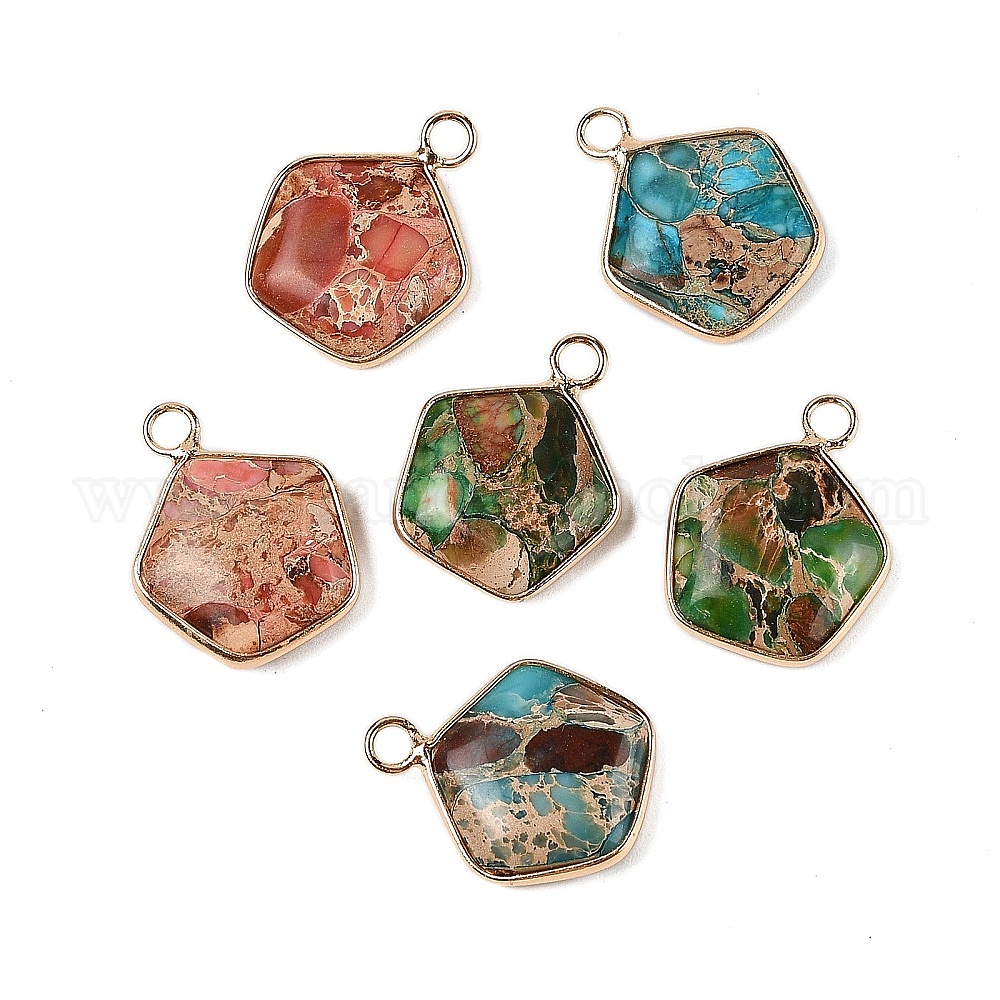 Подвески из натуральной имперской яшмы, окрашенные, латунные пятиугольные подвески, золотой свет