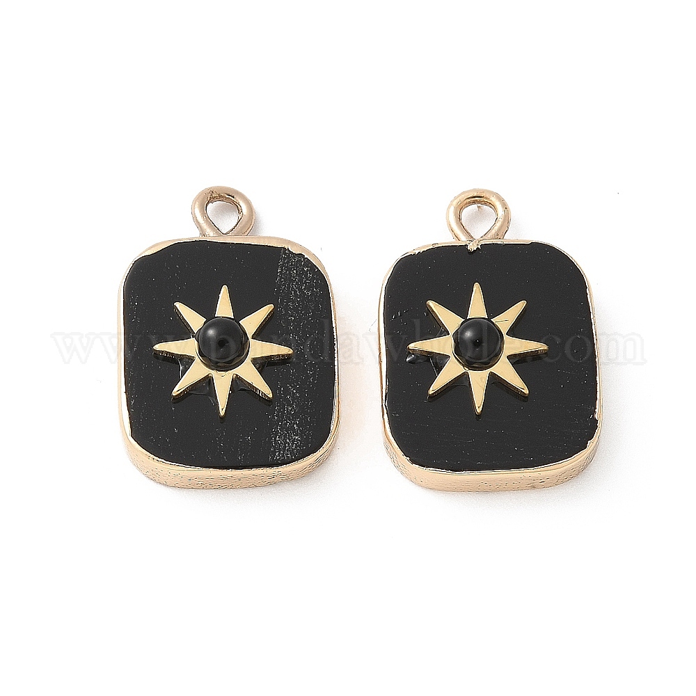 304 подвески из нержавеющей стали, квадрат с солнечными подвесками, ионное покрытие (ip), с черным агатом