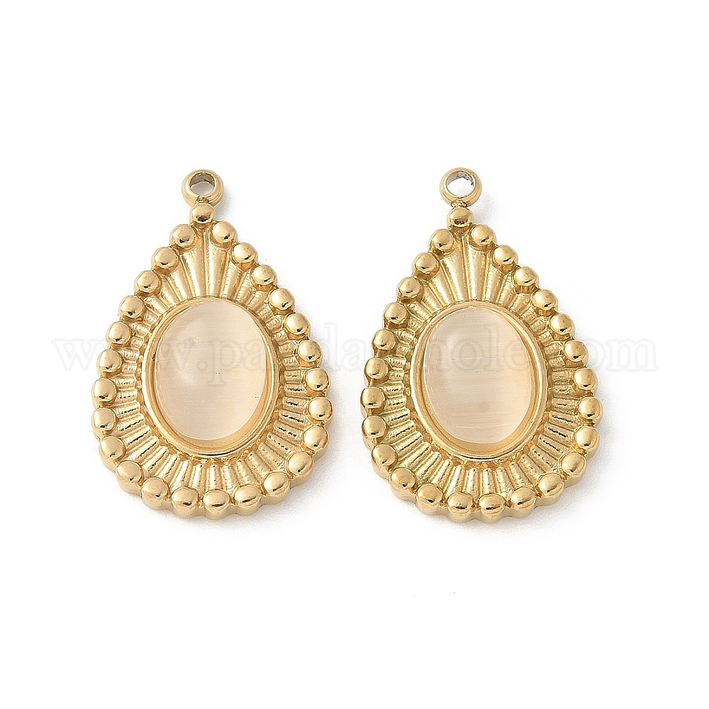 304 подвески из нержавеющей стали, слезинки, с белым нефритом, ионное покрытие (ip)
