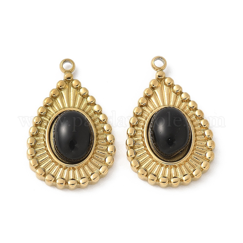 304 подвески из нержавеющей стали, слезинки, с черным агатом, ионное покрытие (ip)