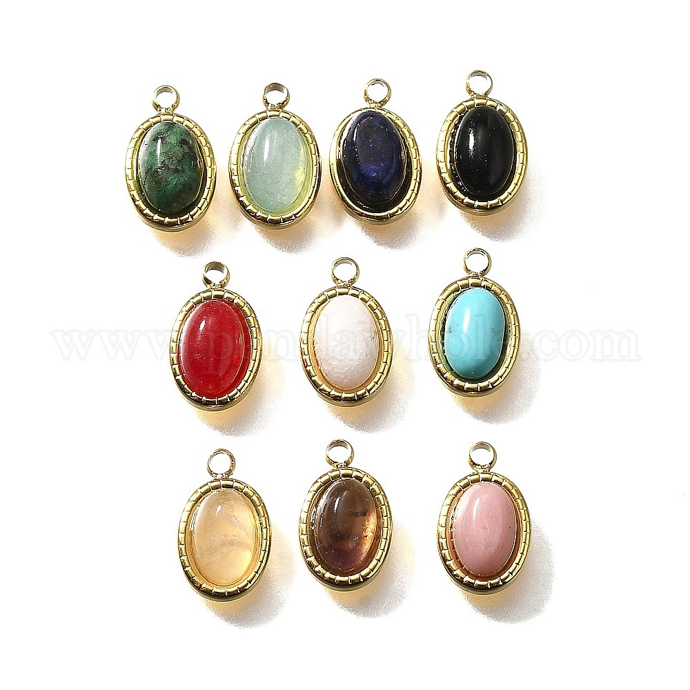 304 прелести нержавеющей стали, овальные, с натуральным и синтетическим драгоценным камнем, реальный 18 k позолоченный, ионное покрытие (ip)