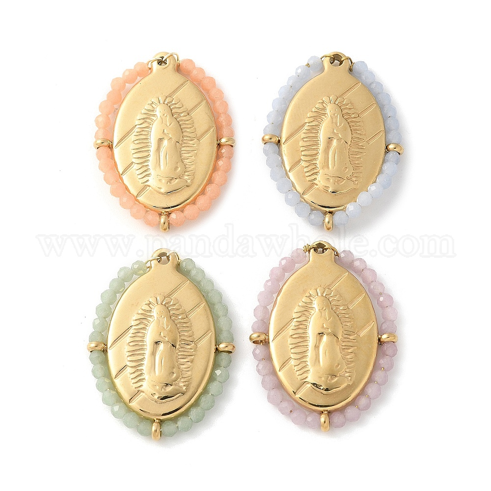 304 овальные тисненые подвески с изображением Иисуса из нержавеющей стали, синтетические светящиеся камни ограненные круглые бусины подвески, реальный 14 k позолоченный