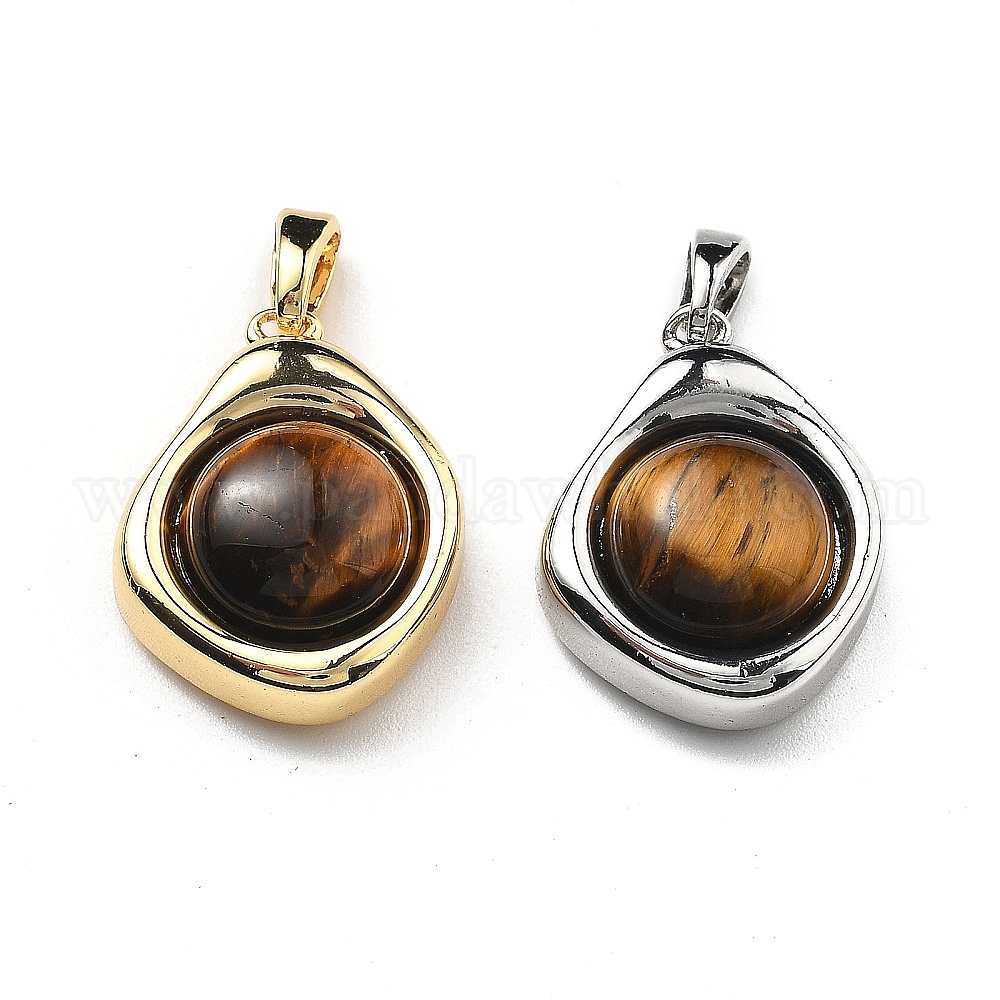 Природных тигровый глаз подвески, ромб прелести, с латунной