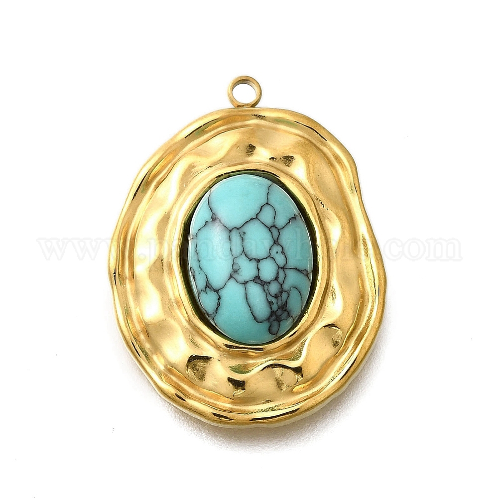 Овальные 304 подвески из нержавеющей стали, с синтетическими бирюзовый, ионное покрытие (ip)