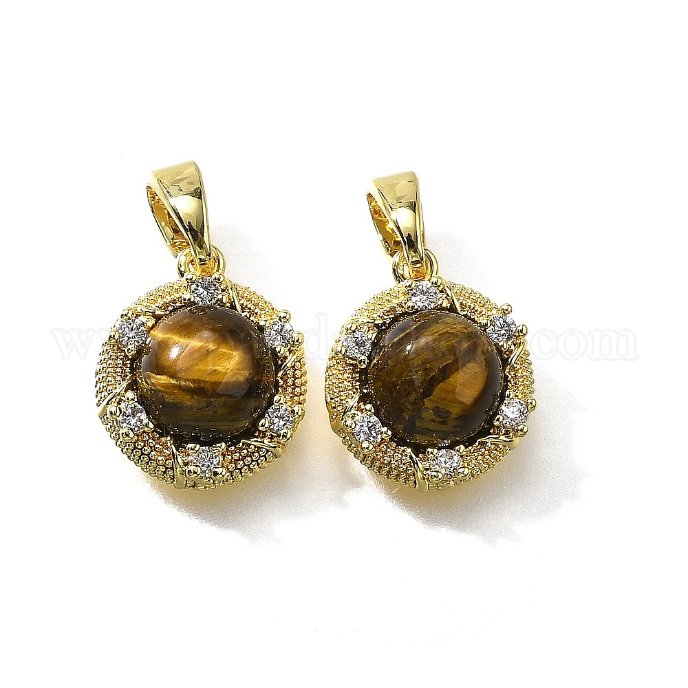 Натуральный тигровый глаз полукруглые подвески, латунные прозрачные кубические циркониевые подвески