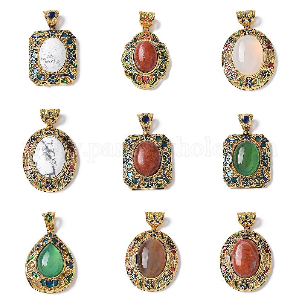 Природных драгоценных камней подвески, латунные разноцветные эмалевые подвески, реальный 18 k позолоченный, стойки покрытие, долговечный, без свинца и без кадмия