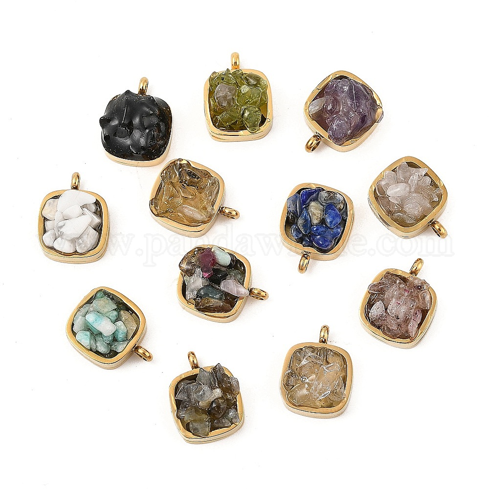 Натуральный смешанный камень 304 квадратные подвески из нержавеющей стали, без кадмия и без свинца, долговечный, стойки покрытие, смешанные окрашенные и неокрашенные