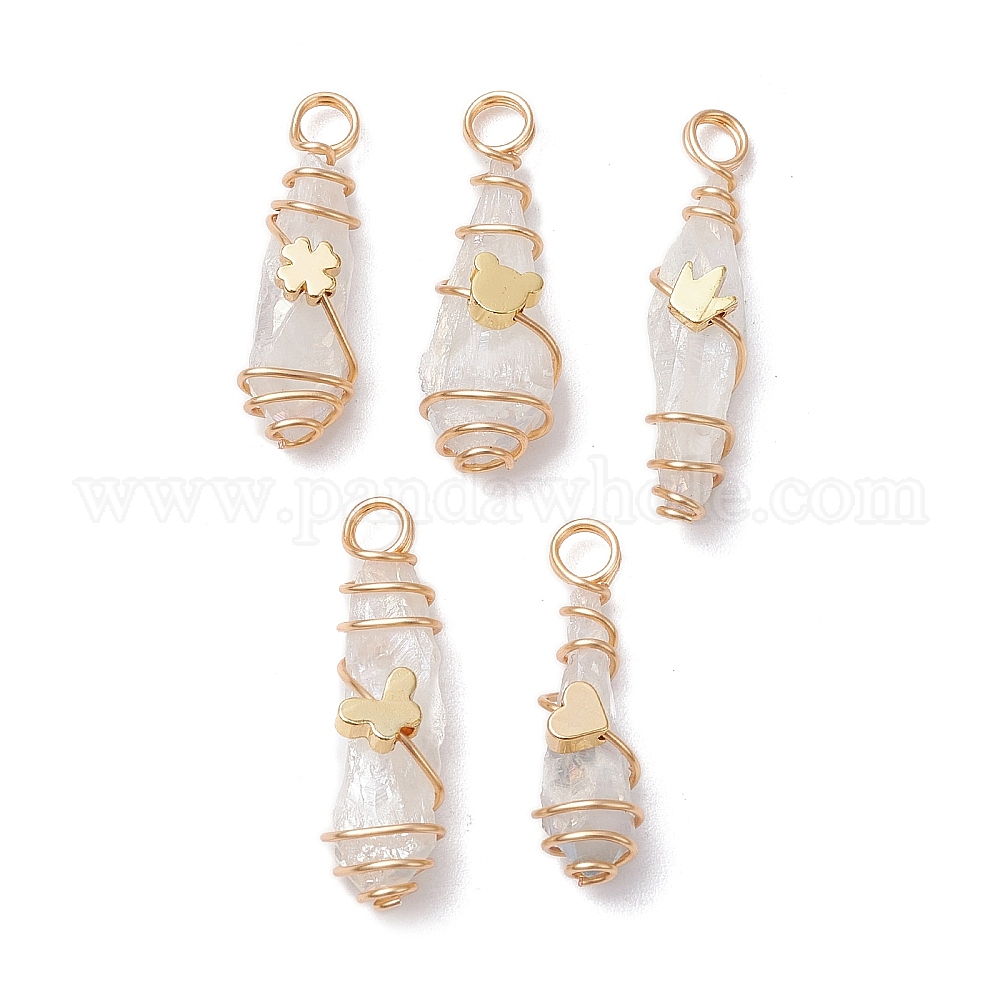 5шт 5 стили гальванические подвески из натуральной кварцевой медной проволоки, слезинки, с латунной бисера, золотые