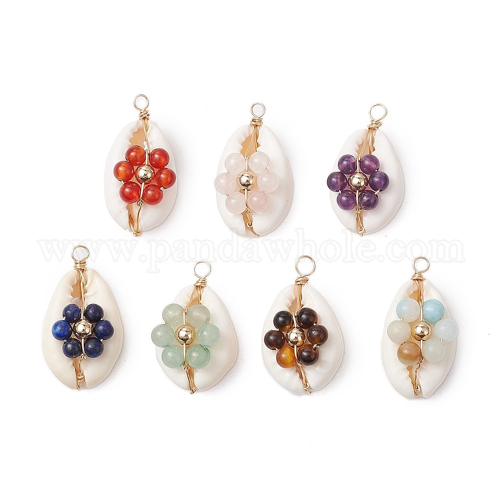7 шт. 7 стили подвески из натурального камня, бисера, цветка, медной проволоки, натуральной ракушки каури, натуральный тигровый глаз, розовый кварц, лазурит, зеленый авантюрин, сердолик, цветочный амазонит и аметист