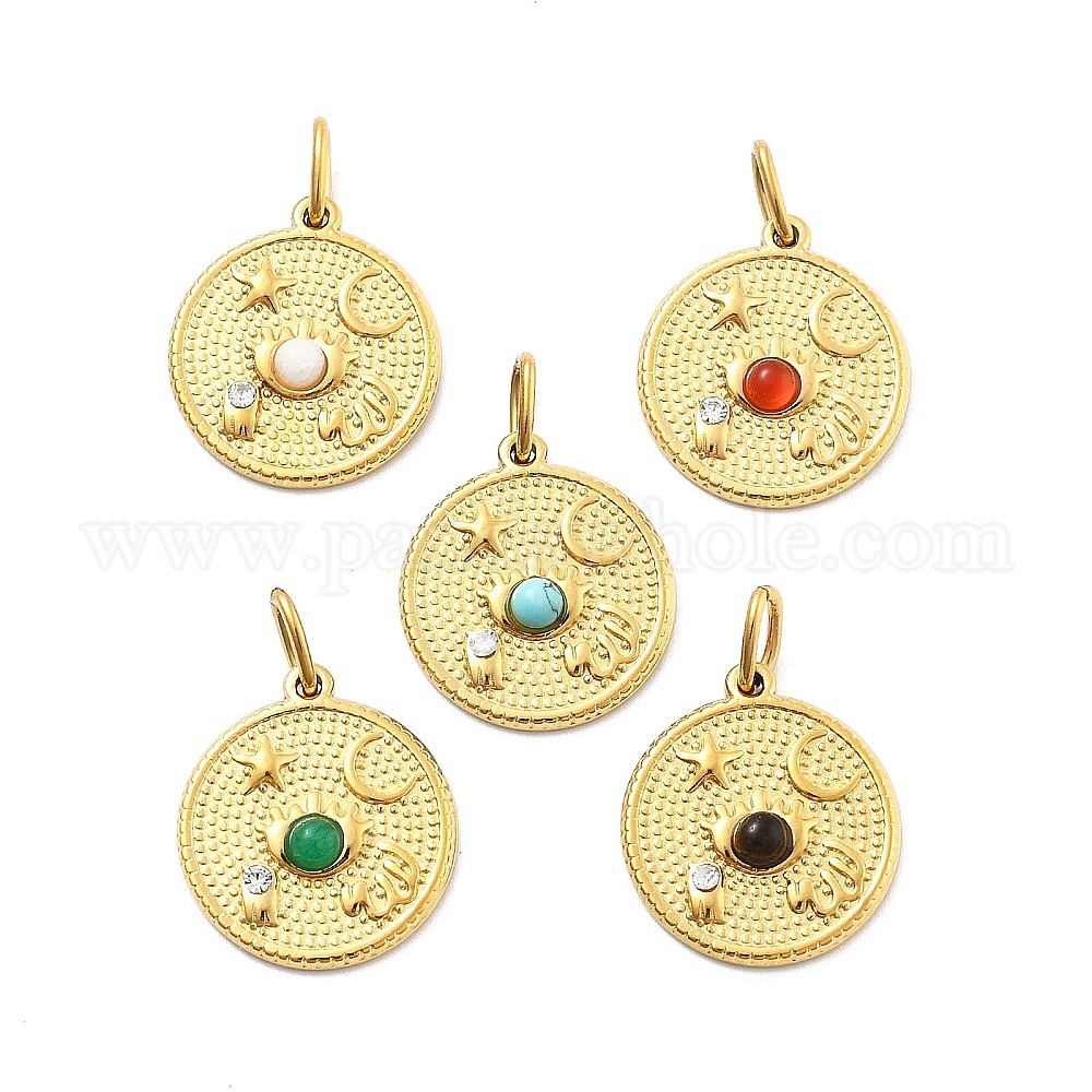304 подвески из нержавеющей стали с драгоценными камнями, с целью перехода в кольце, плоские круглые прелести, ионное покрытие (ip), реальный 14 k позолоченный