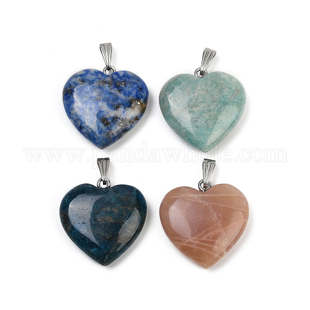 Природных драгоценных камней подвески, подвески в форме сердца с тоном из нержавеющей стали 201 фурнитура из нержавеющей стали