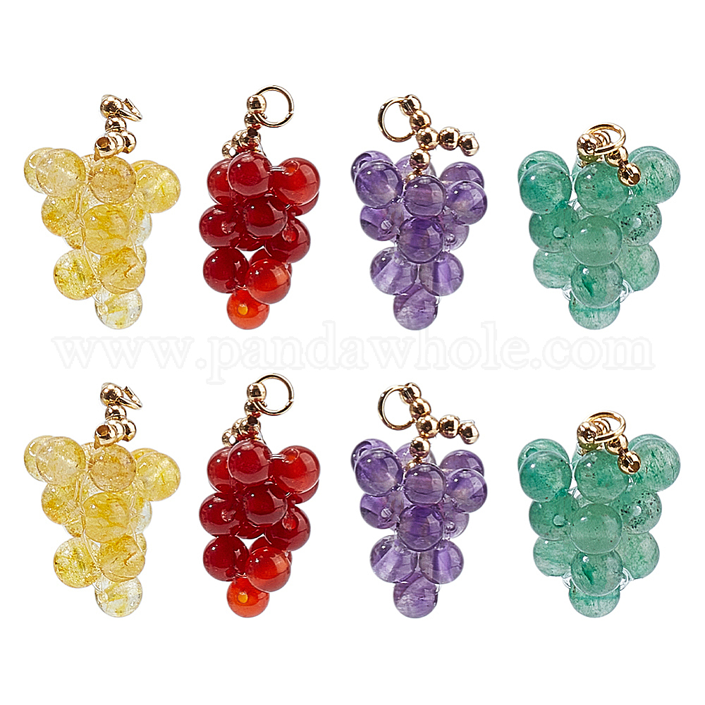 8 шт. 4 стили натуральный кварцевый кристалл, сердолик, зеленый авантюрин и аметист круглые кластерные подвески, подвески в виде винограда с латунной фурнитурой, золотые, смешанные окрашенные и неокрашенные